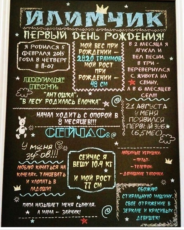 2) плакат достижений малыша! Любому гостю будет интересно прочитать разную информацию об имениннике. Тем более в такие интересной подаче!