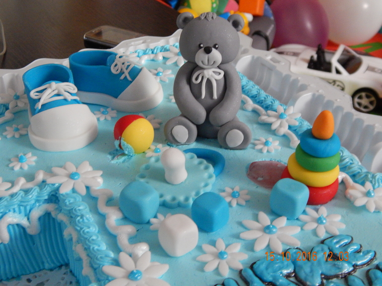 У нас получилась вся неделя праздничная, погуляли от души))) Понедельник - ДР малыша, среда - мой, в субботу отмечали всей семьей. Гулять в ДР не ходили, т.к. было очень ветрено. Папа с утра ездил за тортом и шариками.
