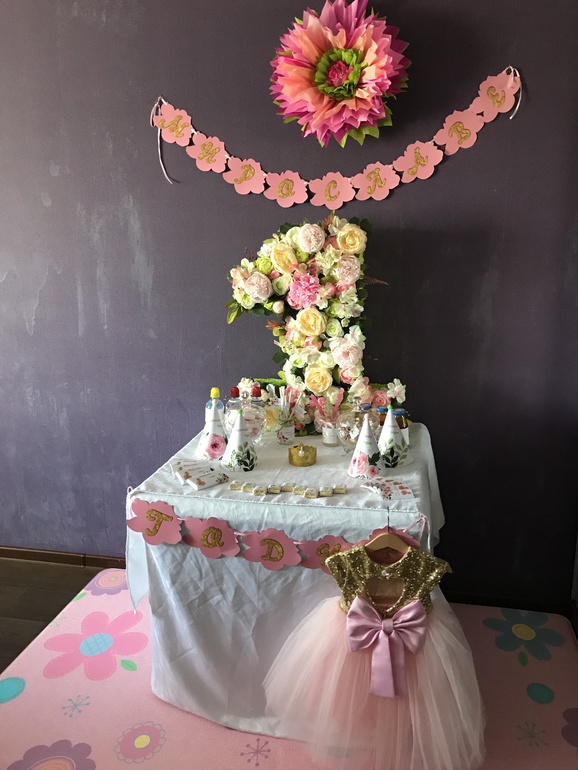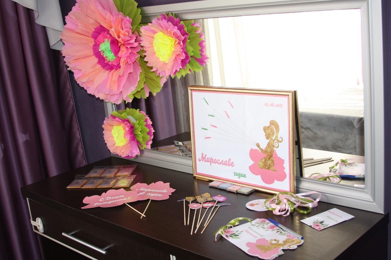 Бумажный декор весь моих рук дело, хотела подготовить еще плакат и огромный цветок для фотосета, но руки не дошли.