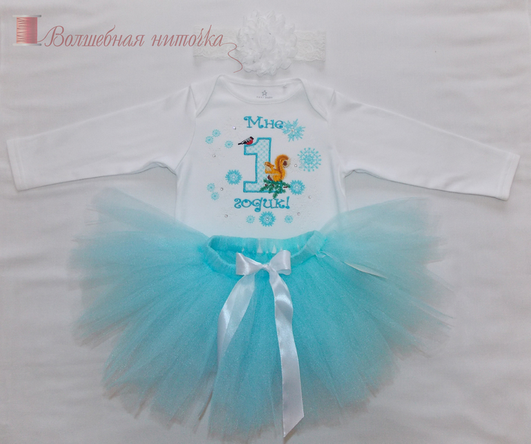 * юбочка ту-ту цвета "акве" с атласным белым бантиком (длина 15-17 см).