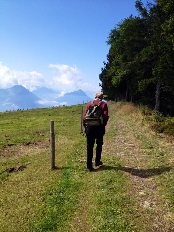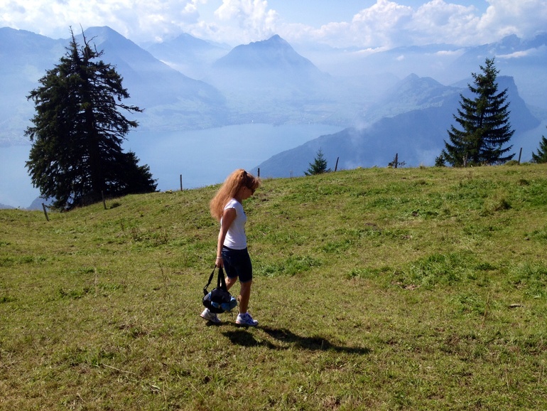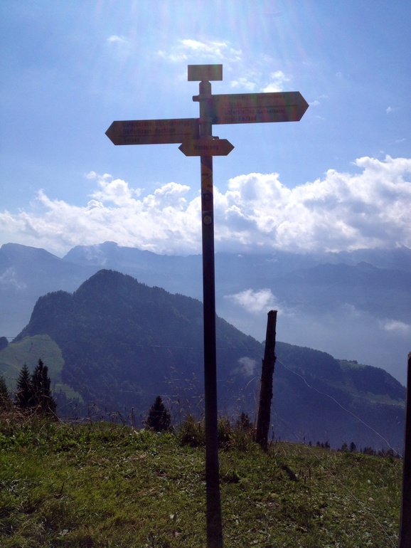 Я уже скучаю по лету. Иногда удается одеть еще летние вещи, но это уже после обеда, если удастся домой забежать... Либо раздеваешься по ходу...больше облаков, причем серых . На их фоне , в лучах солнца безумно яркой становится природа. Ужасно хочется побродить куда нибудь съездить... Куда нибудь на 2000м и выше. Тут недавно выяснилось, что моя бывшая однокурсница переехала в наши края ...и мы решили совместить приятное с полезным.. Мы пошли "в поход"..Поход или "wandern" у местных это национальный спорт. В выходные рано утром пол страны стоит на вокзале в горных ботинках, с рюкзаками и некоторые с палками (как лыжные, для хотьбы). И кто куда едет .. Кто в соседнюю деревню , кто на озера, кто покорять вершины... И едут все, от мала до велика, ... Ну без колясок, понятно... Но с специальными рюкзаками альпийскими доя переноса детей. Все маршруты помечены , заблудиться не возможно...