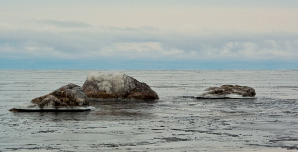 Этот камень на Байкале называется черепаха, он немного обледенел и не так видно