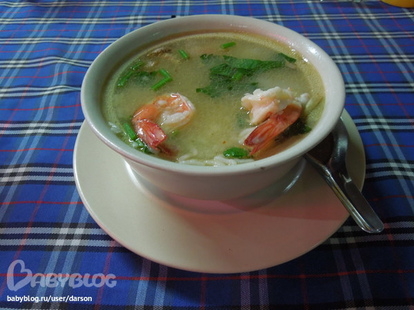 Стараюсь есть больше супы, так как дитятко наше давит на кишечник, что есть сил. Супы местные любят, так что здесь их большое разнообразие. Суп с рисом и морепродуктами стоит от 60 руб.за порцию. Естественно, не обходится без сладкого. Блинчики с шоколадом и бананами ( нет сил устоять) сводят меня с ума (40 руб. блин).