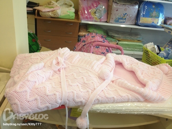 Слипик, шапочка красивишная) Пледик вязанный) И перевязать ленточкой) Когда будете садить в автокресло - снять пледик.. Или прост слипик и без ленты НАКИНУТЬ пледик))