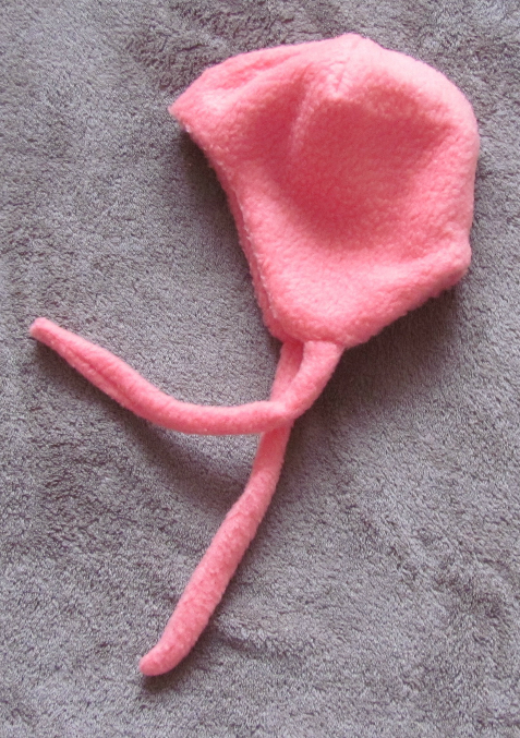 Шапочка из обрезков флиса. Вряд ли получится ее поносить, т.к. она совсем крошечная, а детка планируется летняя.