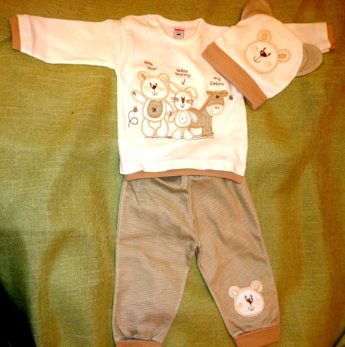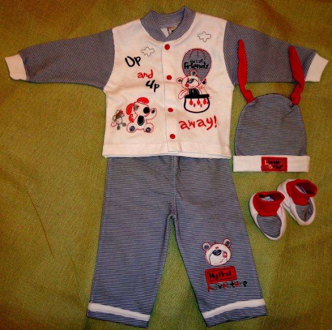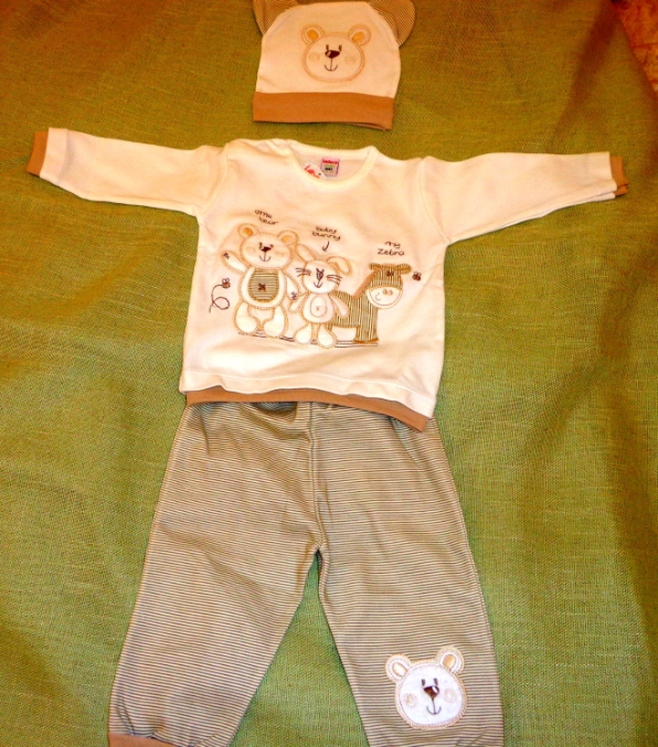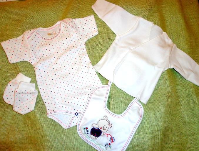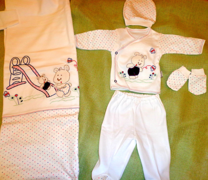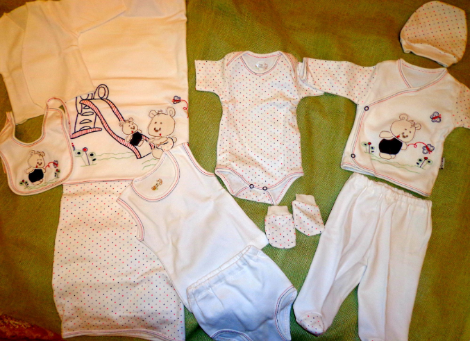 А это сэт из 10 предметов для новорожденного, но мне кажется, что на выписку надо что-нибудь понаряднее, с другой стороны смущает, что атласный комбинезон с галстуком или бабочкой (как сейчас модно) на 1 раз, выпишешься и больше не оденешь.