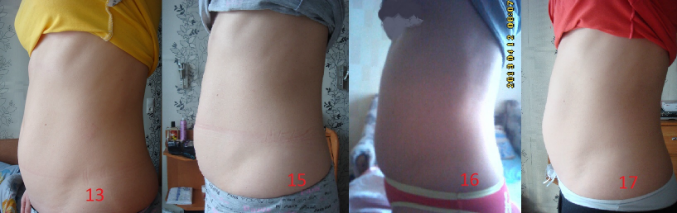 Животик еще маленький, но на Б уже похож. Видно как в 17 недель по сравнению с верхними фото матка поползла вверх. Еще немножко и БАЦ как расти начнет. У меня как раз в начале месяца было 17 неделек и тогда аж пупок натянулся и как-то показалось вырос буквально за дня 3. Растите здоровенькими!