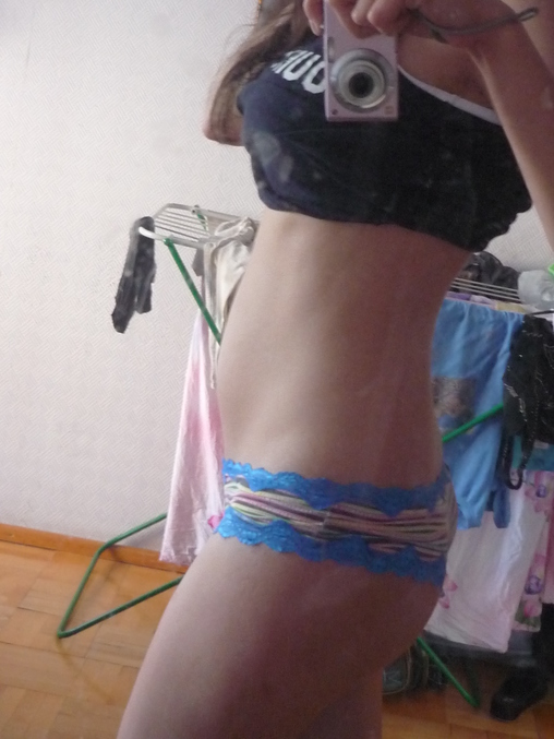 Я высокая и пресс хороший - весь живот вверх уходил - было куда подниматься, а не выпирать - поэтому и не видно почти живота было))