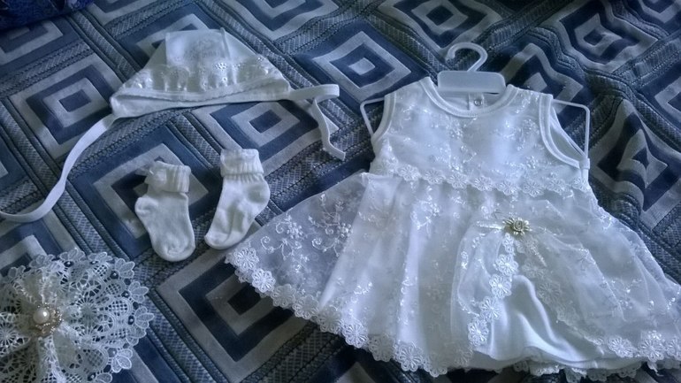Поддерживаю свекровь, так как имею опыт уже...все эти кружева для ребенка неудобно, особенно под пледом. Я в этот раз одену красивый бодик, запеленаю в белую пеленку, а потом в белый красивый плед с бантом. Пс а платье можно одеть дома уже для фотографии