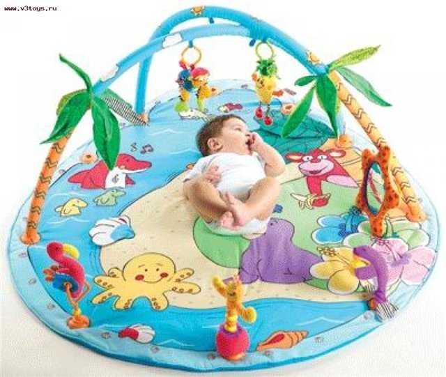 1. Развивающий коврик. В идеале - взять у кого-то попробовать, у нас дочка категорически не хотела лежать на нем и играть. Хоть он был яркий и качественный, опять же Tiny Love Тропический остров. Покупка довольна дорогая и возможно совершенно не нужная.