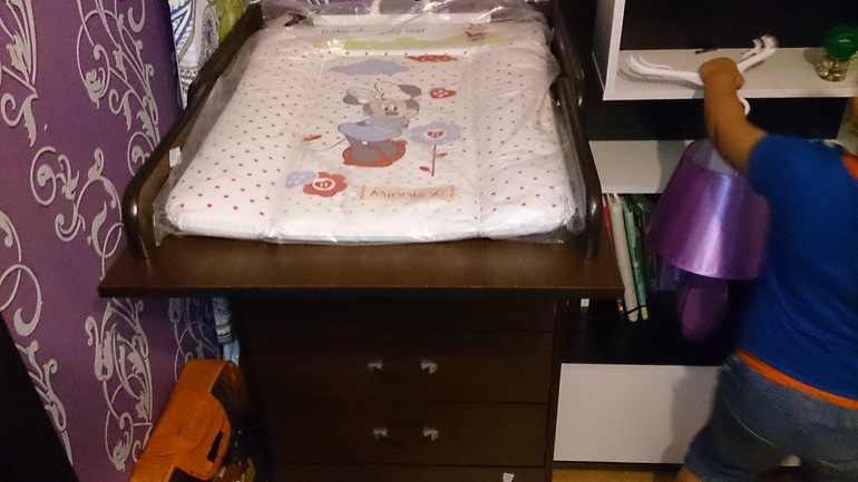 И комодик для пеленания и матрасик купили, искала маленький компактный и чтобы по цвету к стенке подходил вся мебель венге