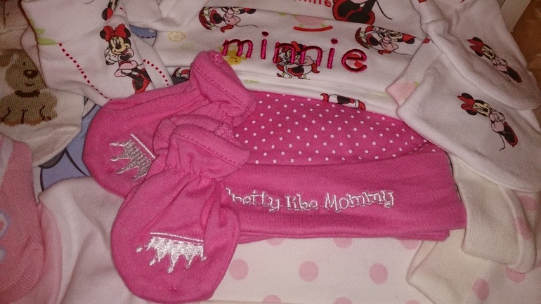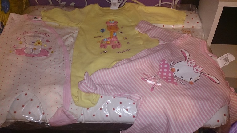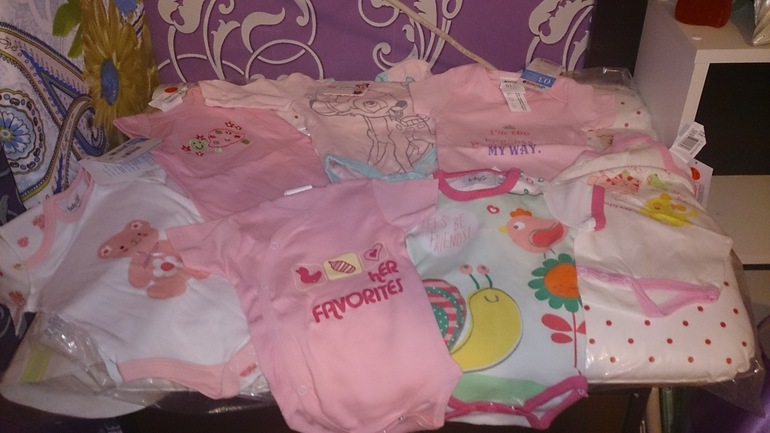 Итак вещи покупалось все спонтанно никаких расчетов я не делала вообщем узнали пол и по чуть чуть стали покупать, кое что мама с Кипра привезла, если будет чего-то не хватать магазины не убегут от нас, да и на рождение наверное надарят всего, как и с сыном было