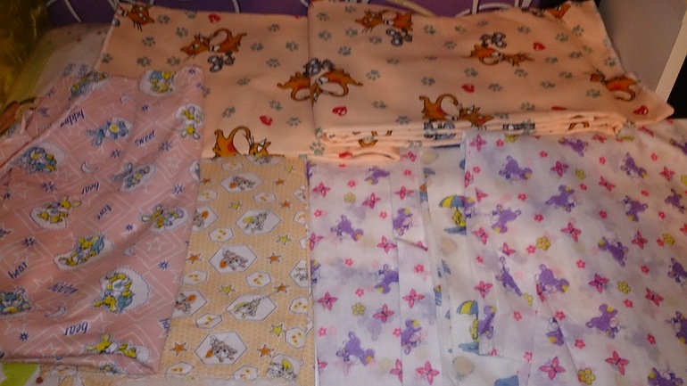Купили пеленок, но не много думаю пеленать долго не буду 5 ситцевых, 2 трикотаж, 2 фланель