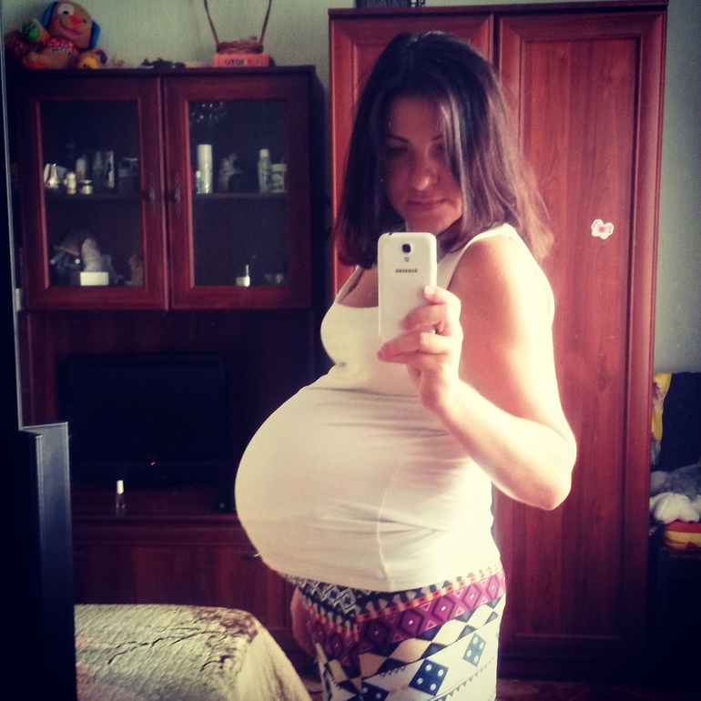 Ухх ты какая пузя большая))загляденье))у меня пузик начал просматриваться только к началу 8го месяца у концу 7го)