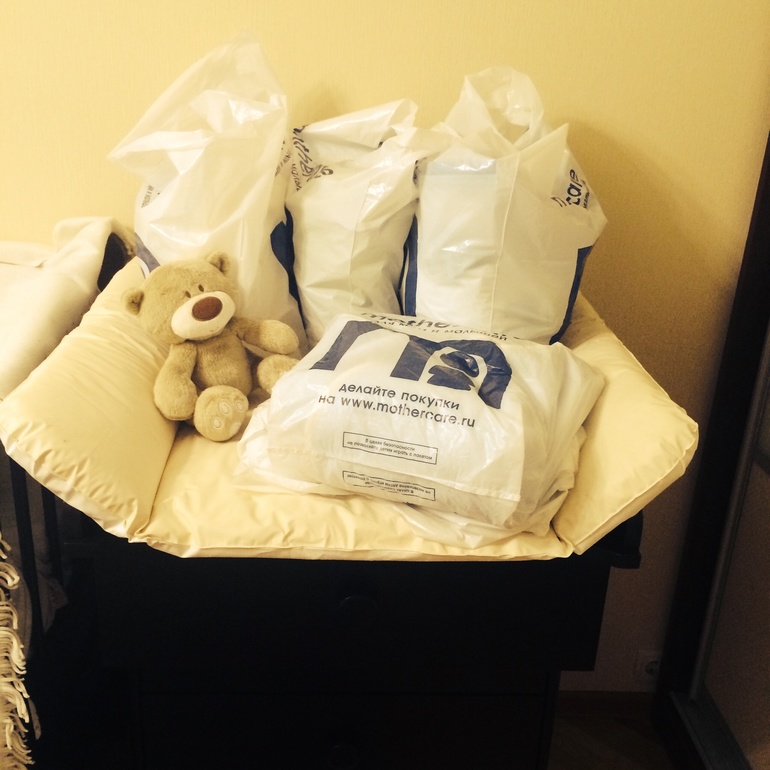 В родблок возьмите несколько послеродовых прокладок, туалетную бумагу и резинку для волос.