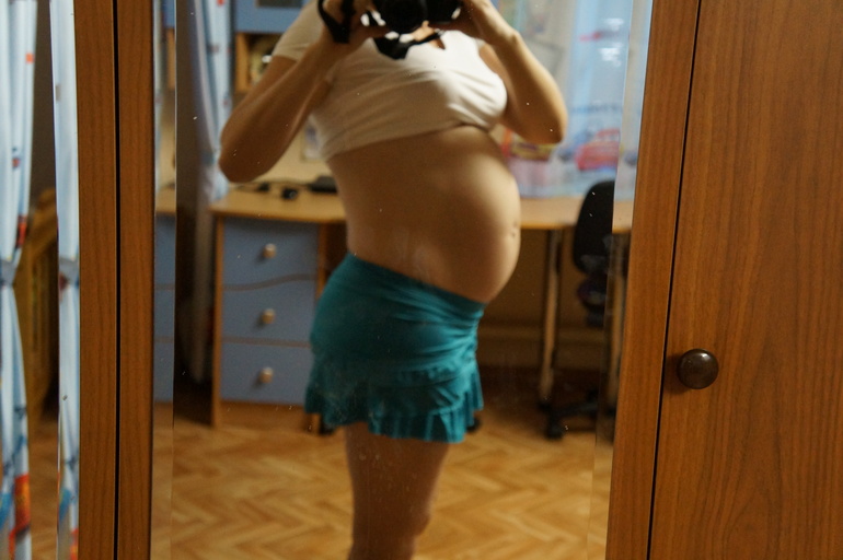 Со спины как раз у меня вообще не видно его. И спереди бока ввалившиеся, а живот весь по средине, Муж говорит, не живот, а дыня "торпеда".