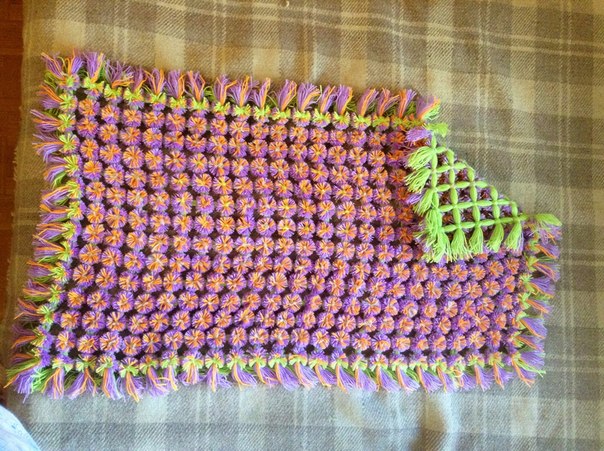 а до фига уроков на эту тему. введите в любой поисковик запрос "плед из помпонов"