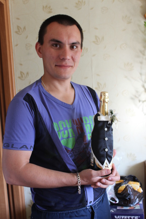 Ну и свадебная бутылочка шампанского за рождение ребенка ( как знала заранее,чо будет сыночек и оставила бутылку-жениха))))Невесту распили на первую годовщину свадьбы)))))
