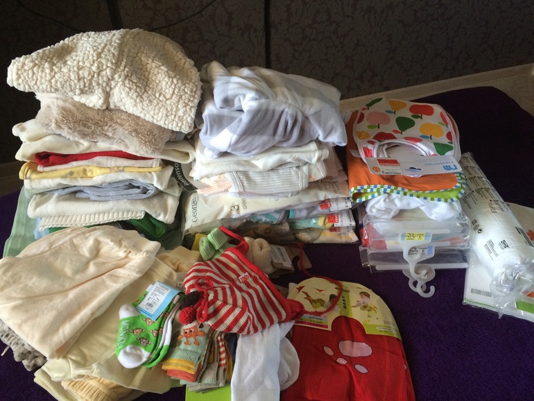 У меня идет 16я неделя. Беременность вторая. Когда курс доллара начал ползти вверх, я решила что нужно понемногу покупать. Судя по росту курса, после нового года в нексте и подобных популярных магазинах будут совсем другие цены. А переплачивать очень не хотелось. Чтобы не повторить прежних ошибок, я составила список одежды, самые базовые вещи. Покупала по списку. Тк не знаю еще пол то покупала унисексовые вещи. Но учитывая что у меня уже есть дочка, розового и мимимишного уже не хотелось. После следующего узи докуплю все что осталось лобо розовое, либо голубое)) сегодня перебрала зарасы и вот что получается