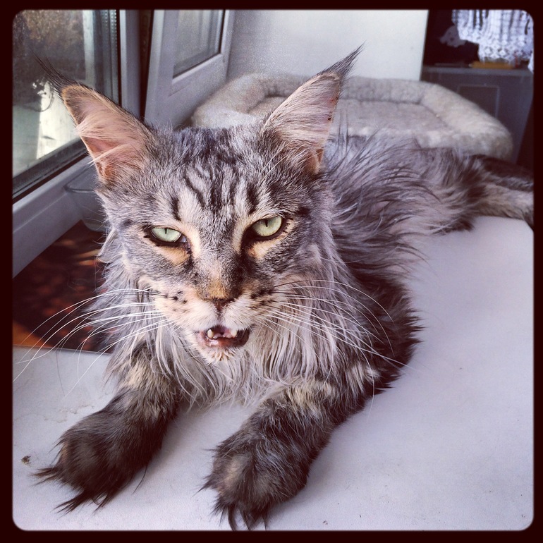 Сейчас из живности остались: три крысы, кот и кошка. С крысами особенных проблем нет. Коты у нас породистые - мейнкуны. С котом проблем тоже нет. Он кастрирован, мимо лотка не промахивается, обои не дерет. Если его вовремя вычесывать, то шерсти в доме почти нет. Но вот кошка...