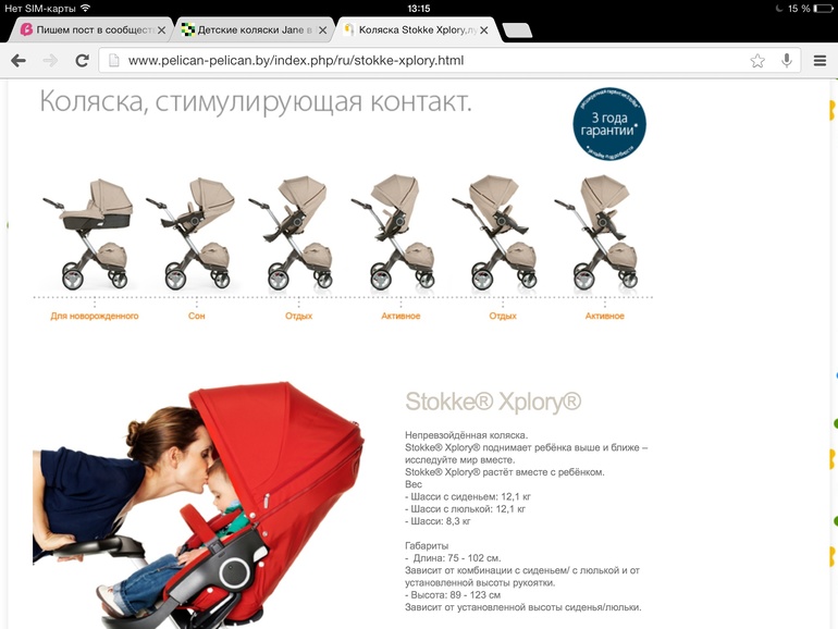 У меня в поселке огромное количество Stokke Xplory, но большинство ей недовольны и как малыш начинает сидеть, сразу покупают Maclaren, а на второго берут уже другую коляску. Как мне говорили она только для хороших ровных дорог, плохо ведет себя в зимних условиях, плохо складывается, но плюс что ребенок высоко сидит.