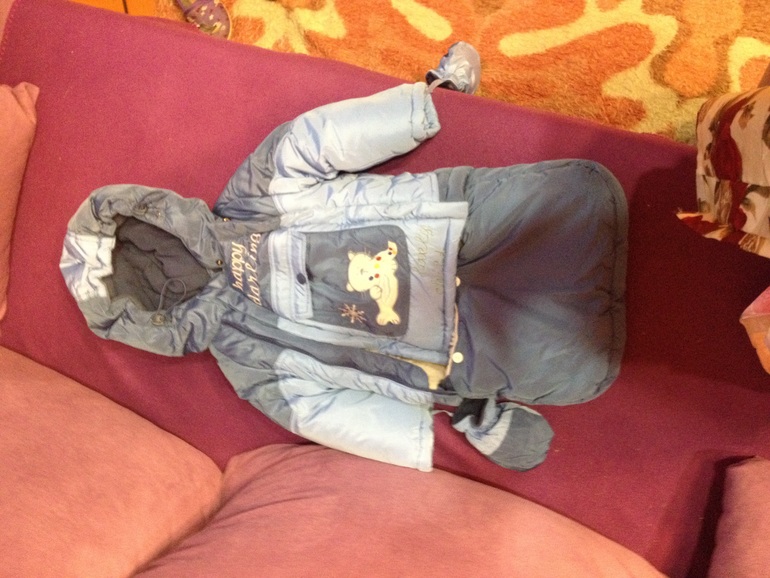 Сверху комбез на овчинке. Еще положила пеленки Хб и плотную