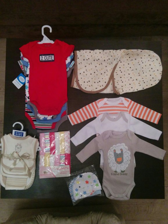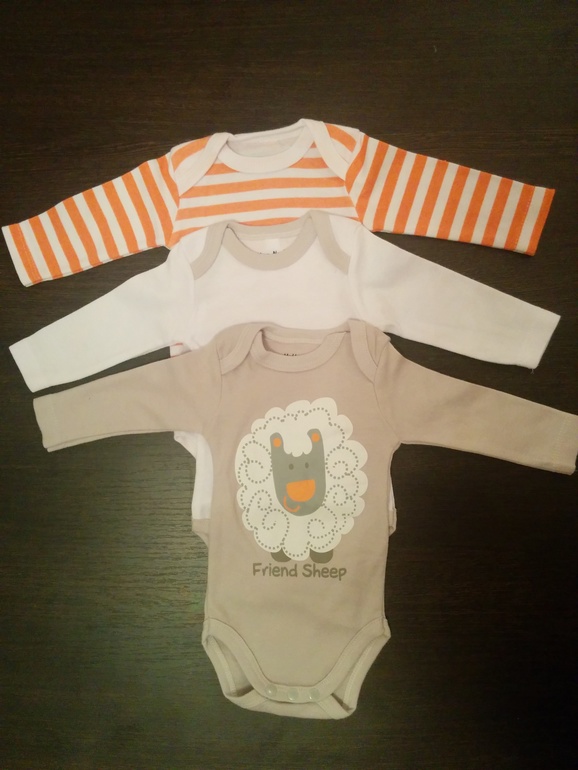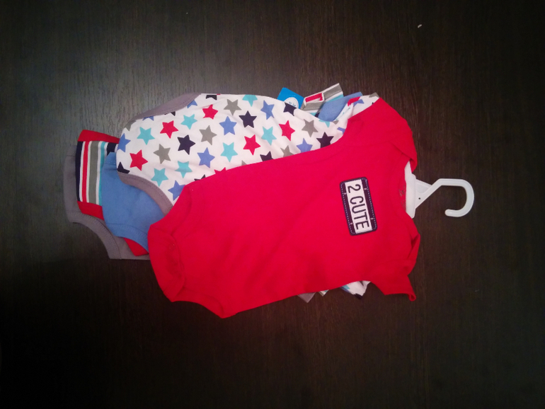 2. Набор бодиков Luvable Friends - 5 шт. Хлопок. Брала на 3-6 месяцев. Красивые и классные. Кнопочки железные. Все на вешалочках, очень аккуратненько.