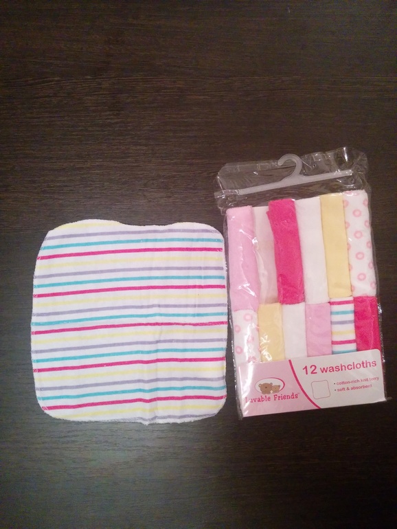 Набор полотенечек. Вообще-то я заказывала зелененькие, а пришли вот такие розовые девчачьи милости. Оверлочены по периметру, но не на 100% аккуратно. Для вытирания срыгиваний подойдет прекрасно.
