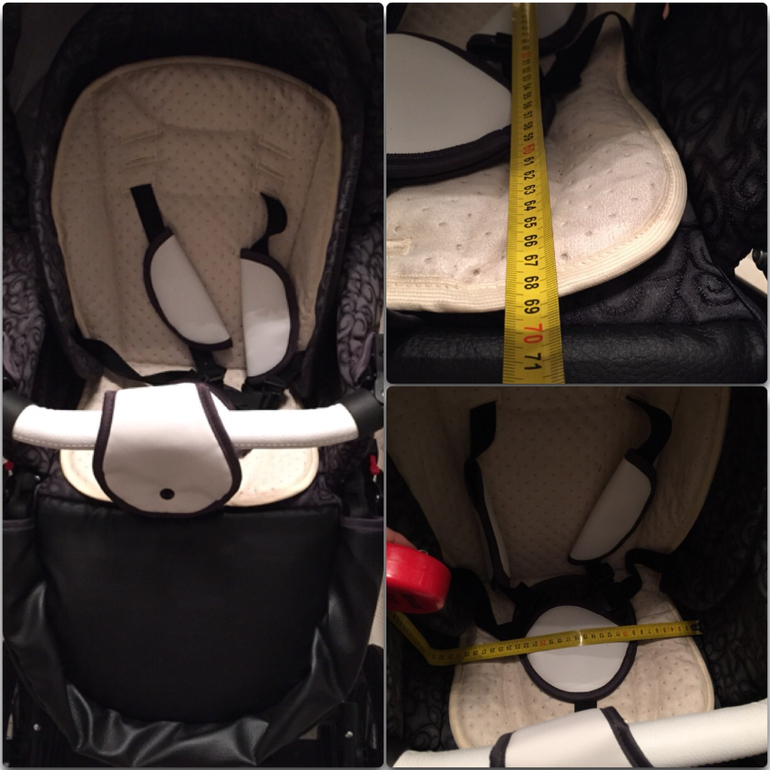Размер тоже не совсем соответствует заявленному 34 ширина и длина в разложеном положении 70, до подножки. Подножка из эко кожи, легко будет ухаживать. Внутри вложен также мягчайший похожий на велюр или замшу тонкий матрасик (бежевый), очень приятный на ощупь. Его можно вытащить. Капюшон опускается до нельзя и откидывается туда же.) По функциям, тоже самое что и в люльке. Подножка и спинка регулируются в 3 положениях. Чехол на ножки с теплой прослойкой. Установить можно по и против хода движения.