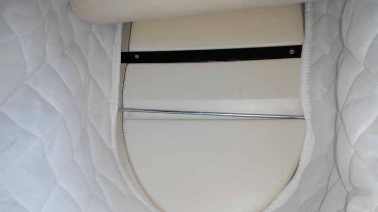 Под матрасиком люльки есть жесткиет распорки, которые можно сложить для складывания люльки, одна из распорок стоит кривовато...