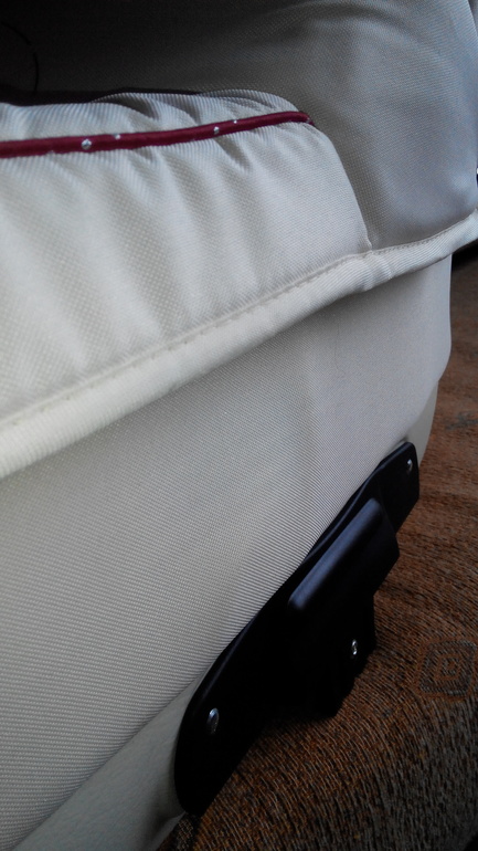 Сбоку люльки материя натянута с волной, на фото не сильно заметно (такая волна над чёрным креплением), но на ощупь ощутимо сильно. (Это лечится отворачиванием боковых болтов и натягиванием материи)