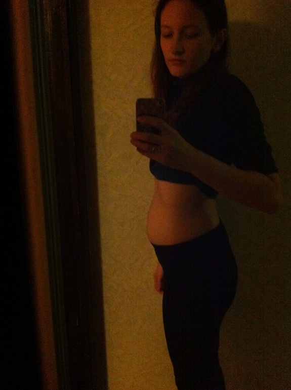 Огромный уже пузан вывалился. 15-16 уже на вопрос: тыыыыы штоооо, беременна???? Не верят, что я просто много жру!