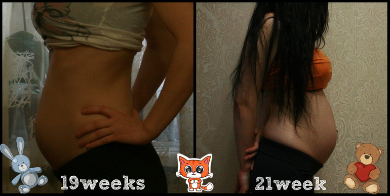 Фото первое, на сроке 21 недель 4 дня. Второе, на сроке 20 недель 6 дней.