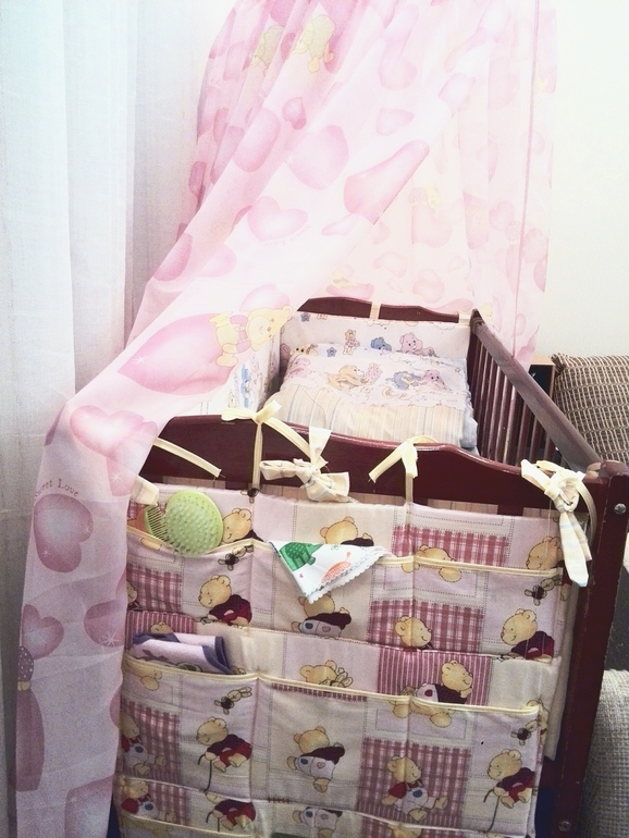 Постельные принадлежностиПошила . Балдахин: в руллоне длина 2,80м, в ширину взяла 4 м. На кроватку нужно 1,40х4м, итого вышло два куска (на две кроватки), может обработаю и подарю кому нибудь) об работала края косой Бецкой шелковой.