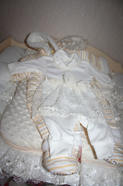 Вся проблема в том, что, я не знаю чем думала, при покупке конверта, но он без шапки, а при покупке слипика, он без носочек и чепчика-((((