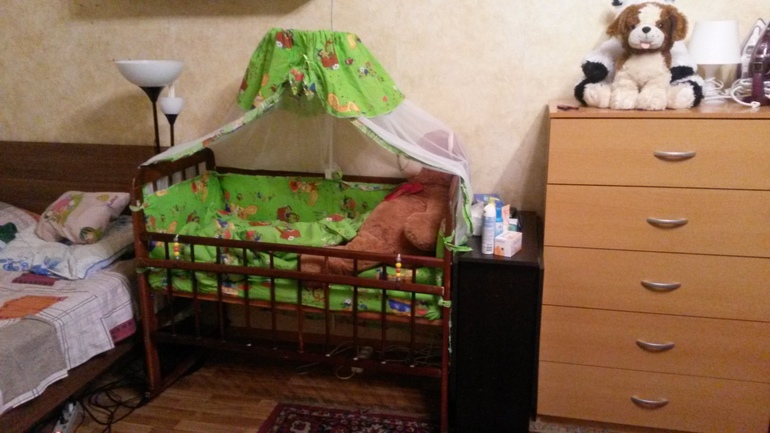 Кроватка досталась тоже от племяшки - мы ее собрали, застелили, посмотрели куда поставим и разобрали обратно.