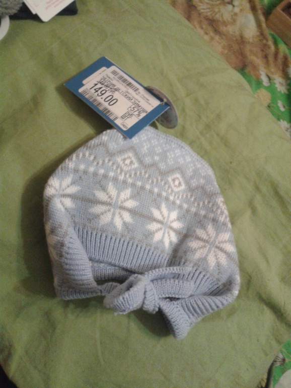 еще там же я прикупила вот такую шапулю на 62-68(по чему то размер написали по росту)по скидке. октябрь-ноябрь