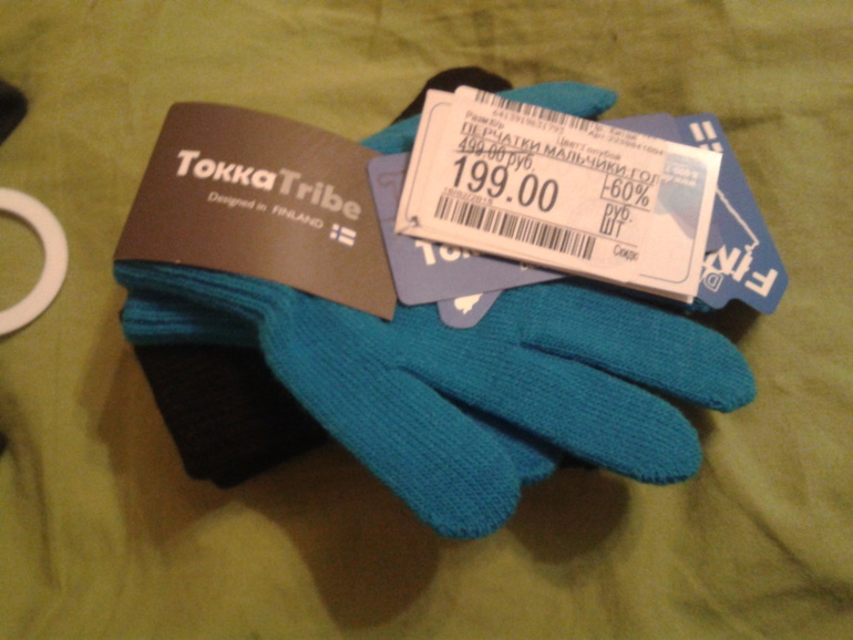 Максу купила рукавицы Токка, а то в варежках уже жарко, а с голыми ладошками еще холодно)) черные и синие в наборе)