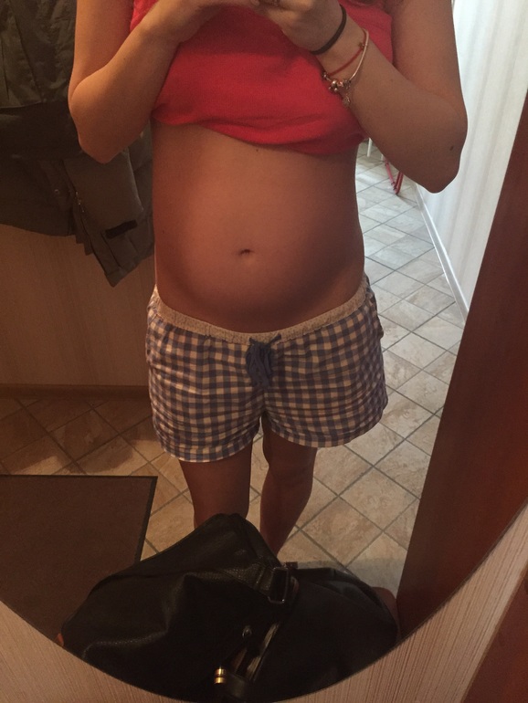 Какой аккуратный животик ) Вы словно котенка ждете ))) На самом деле не выглядите на 81 кг Оо(если что, то простите за кривую шутку)
