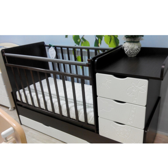 Для меня у такой кроватки оказался высоковат пеленальник. Руки будут уставать и неудобно, поэтому взяла раздельно