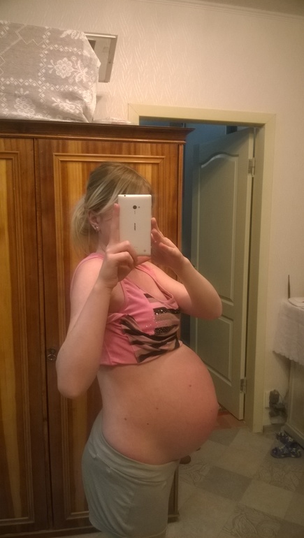 Для истории наш пузик) может это чисто мои заморочки,но иногда кажется что пузико такое маленькое,где там уместиться малышу))) Сынок всё интенсивно пинается,особенно когда мама с какими то тётями разговаривает или сидит в очереди в ЖК)) Завтра иду к Г,в очередной раз узнать что с моим гемоглобином (падал на 100,после сорбифера поднялся до 108,Г хочет 110))) Ещё,у меня началась ПасхаМания)) я и раньше любила куличи,а сейчас так вообще безумно тянет съесть всенасветепасхи)))