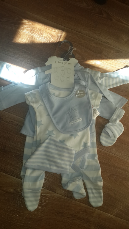 Я еще прикупила в Mathecare наборчик на выписку 8 предметов: боди с длинным руковом, с коротким, ползунки и распашонка, комбез человечек, рукавички и чепчик. Думаю из этого изобилия уж точно выберу нужное по погоде.