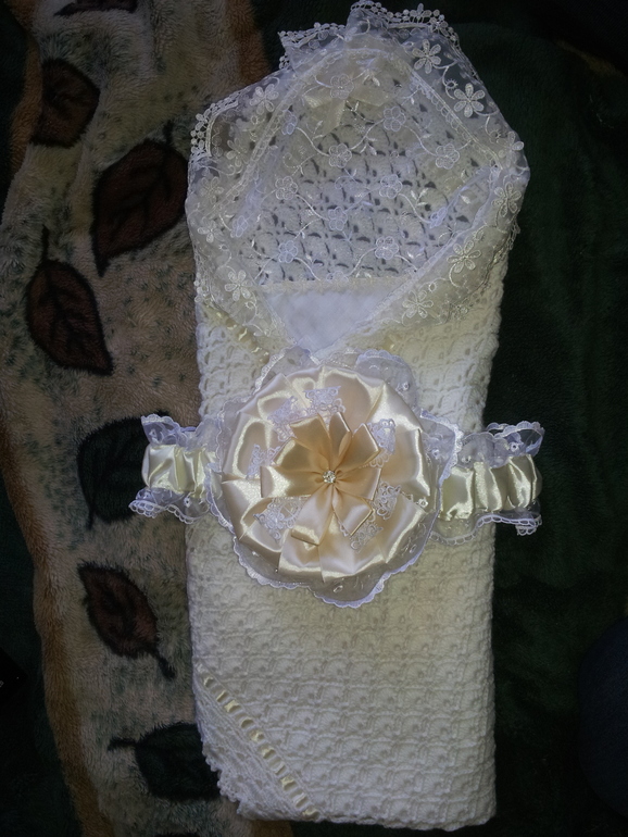 Наряд на выпискуВот уже и началась 37 неделя. Подготовила наряд на выписку, наконец доделала бант для пледа. Осталось определиться с шапочкой, ну и как погода, если тепло то 2 фото, а при прохладе добавлю флисовый слип. Фото под катом.
