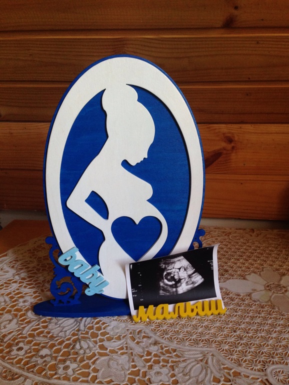 Ждем мы сыночка, нашего маленького принца. Лапочка доченька есть. По последнему УЗИ были почти 2 кг. И эта рамочка, это подарок от мужа (сам сделал). Хвастаюсь)))