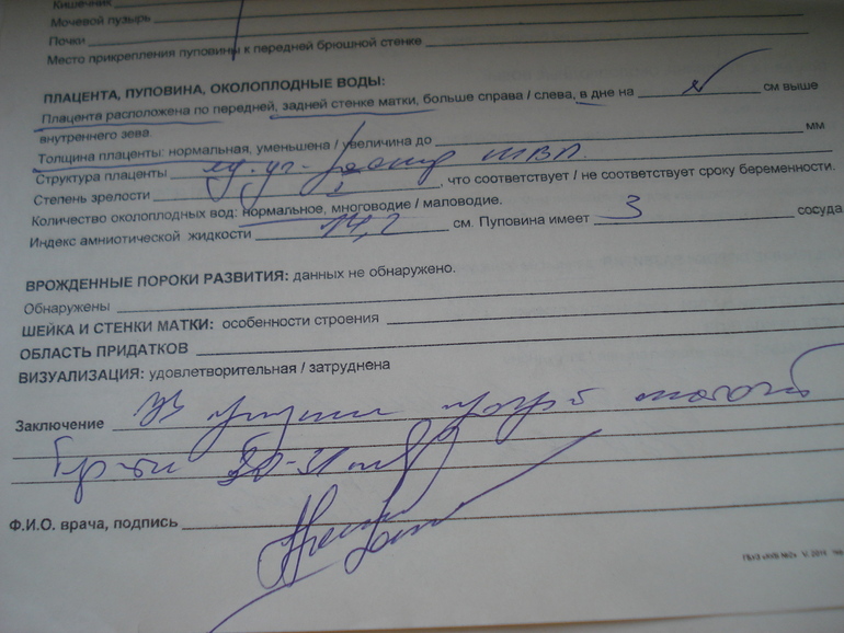 в листе протокола узи,в графе структура плаценты не пойму что написанно,и в самом заключении...может кто расшифрует???спасибо!!!!
