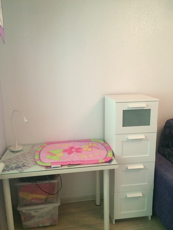 Мебель для малыша (стульчики, шезлонги и проч.)Обычный стол икеевский был в наличии,докупила комодик и получился вот такой пеленально-переодевалтный уголок) как вам? Чего не хватает? Матрасик специальный нужен?