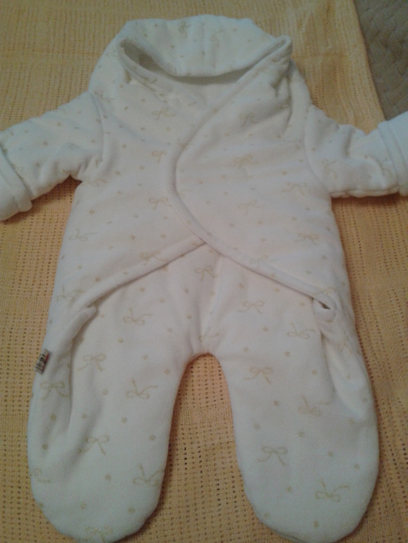Кстати, пледик хлопковый желто-бежевый, я на нем все фоткала, может быть в него детенка завернуть вместо комбеза?