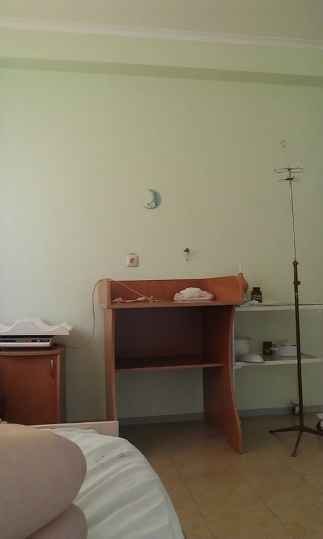 Положили меня по просьбе к хорошему дяденьке, я и со старшим у него наблюдалась. Выбрала платную палату (если б я только знала, что в этой палате задержусь на три чала, легла б в обычную). Дали мне кучу наставлений и мой распорядок дня на сегодня. Отправили на 20ти минутное КТГ. и тут тебе на, "8 балов"... Как я тогда злилась на своего гинеколога, ведь просилась на платное УЗИ, а потом решать насчёт патологии, но он мне отказал... Отправили на УЗИ, и тут новая новость, двойное обвитие шеи, а я так надеялась, что малыш скинет пуповину с плеча и всё будет ок, а тут аж двойное намотал... Потом меня направили на кресло, и я попросилась и в этот раз на стимуляцию, вторые роды и снова стимуляция по моему желанию... Ну не охота мне лежать в патологии, та ещё под завязку забытой, та с перспективой кучи капельниц и уколов... И дальше не знать, что с малышом, ведь в любой момент может всё пойти не так и может быть ЭКС или я могу что-то упустить, не дай бог, будет всё печально... Так что я напросилась на хороший осмотр... У врача руки от бога, хватило одного осмотра и процесс пошёл... Открытие при поступление было в два пальца, но когда оно началось, не кто не знает, так как я на кресле была ещё на 20х неделях... Сказали, что пробка отсутствует, но почему-то она стала только отходить после второго осмотра, как-то врач при первом осм. её не заметил =/ Два часа прихватывал живот, потягивало слабо, но я и не думал, что всё началось, я понимала, что я загремела сюда в пустую, так как впереди три выходных, и некого не будет, кроме дежурного врача, перспектива не из лучших =(( Поставили мне укол, для размягчения шейки и капельницу для поддержания малыша.