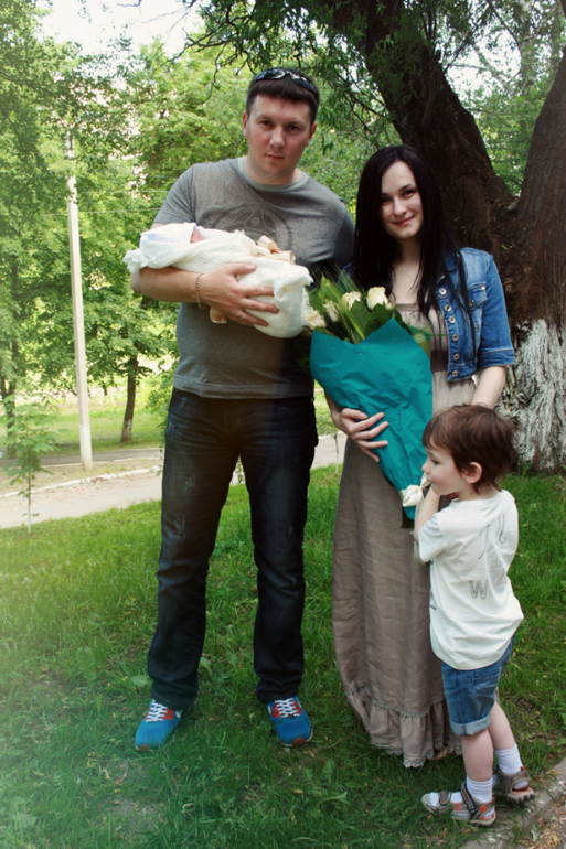 Родила я в 00:15, 30.05.2015 года, на сроке 38 нед. 3 дня, на 10 дней раньше положенного срока. Сыночка Никиту. Весом 3100, ростом 51 см. С серыми глазками и тёмным цветом волос, сейчас мы посветлели и больше не похожи на брата. Кирилл был другой, но впервые дни на личике они были похожи, только у Кирилла глаза были тёмно синие и он был немного крупнее. Сейчас они разные.