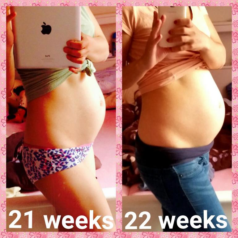 спасибо. У меня первая фотка в первый день 21 недели и вторая в последний день 22 недели :) там больше недели разница, поэтому наверное такой скачек. + вторая фотка животик вечерний ;)